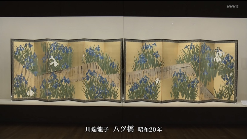 川端龍子が尾形光琳の『八橋図屏風』などに触発されて描きました。