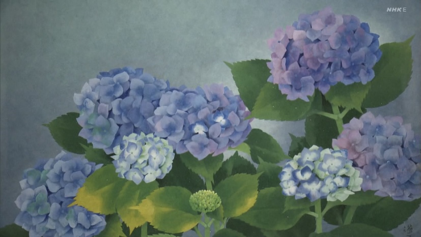そのころ培われたデッサン力が紫陽花の写実的な表現に生きています。