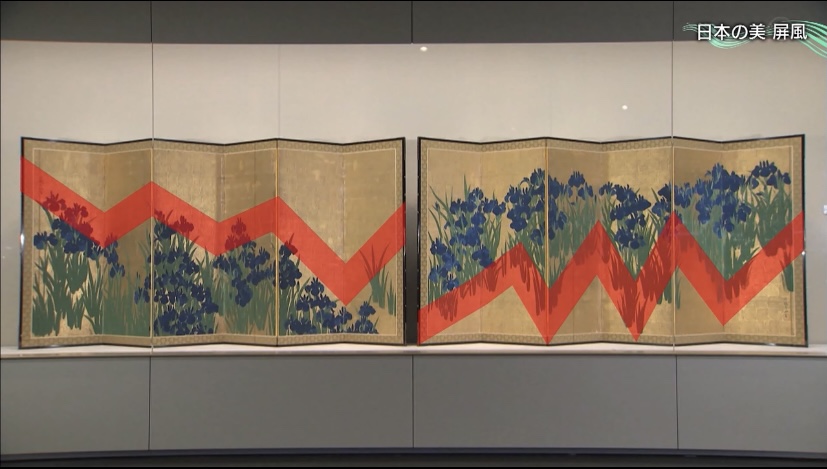光琳は屏風の折り目を巧みに生かし、3次元の燕子花を出現させたのであった。