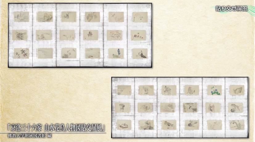 多くの絵師が活躍するようになると、複数の作品を一つの画面に飾る貼り交ぜ屏風」が盛んに作られた。