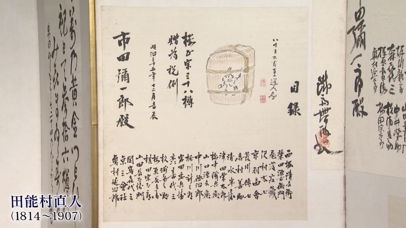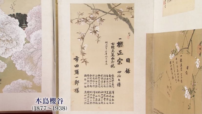 最後の文人画家・富岡鉄斎は奔放な筆致で目録を書き、右上に桜の花を添えている。