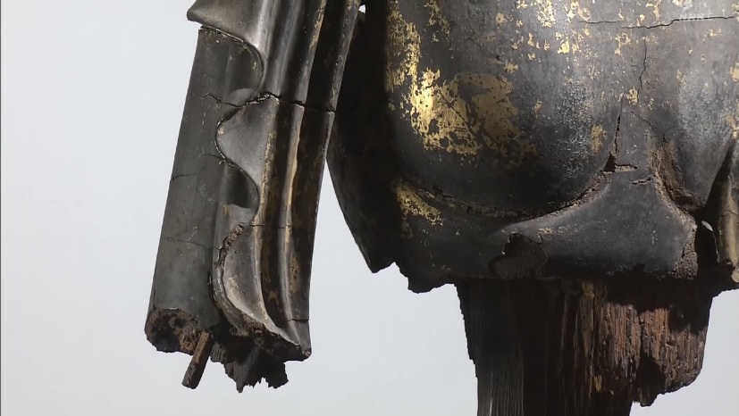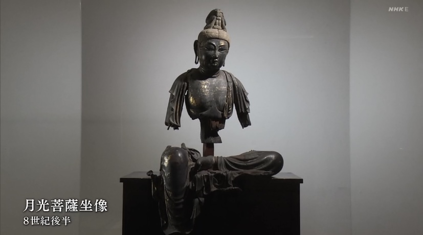 著しい損傷を被りながらも、なお威厳に満ちた『月光菩薩坐像』。