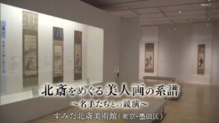 その他美術番組 【アートシーン】北斎をめぐる美人画の系譜~名手たちとの競演~ 2025年9月28日にNHKで放送された「日曜美術館アートシーン」の展覧会紹介の内容をまとめました。 *画像出展元:テレビ番組「日曜美術館 アートシーン」より 展覧会『北斎をめぐる美人画の系譜~名手たちとの競演~』 ほおず... 2025.09.28 その他美術番組美術番組