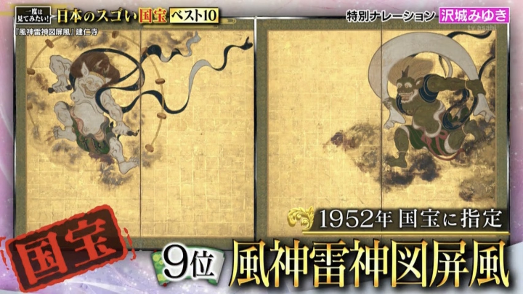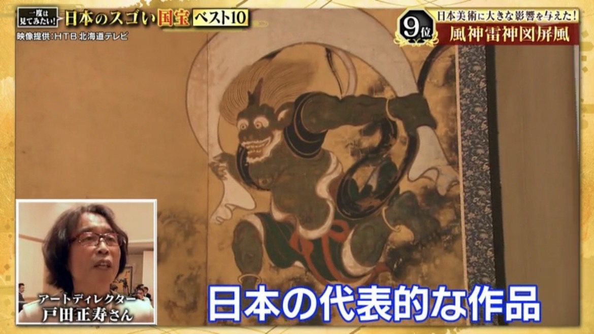 9位は俵屋宗達が描いた、国宝《風神雷神図屏風》です。
