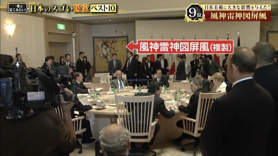 2008年に北海道・洞爺湖で開催された主要国首脳会議(G8サミット)では、この《風神雷神図屏風》の複製品が展示されていました。