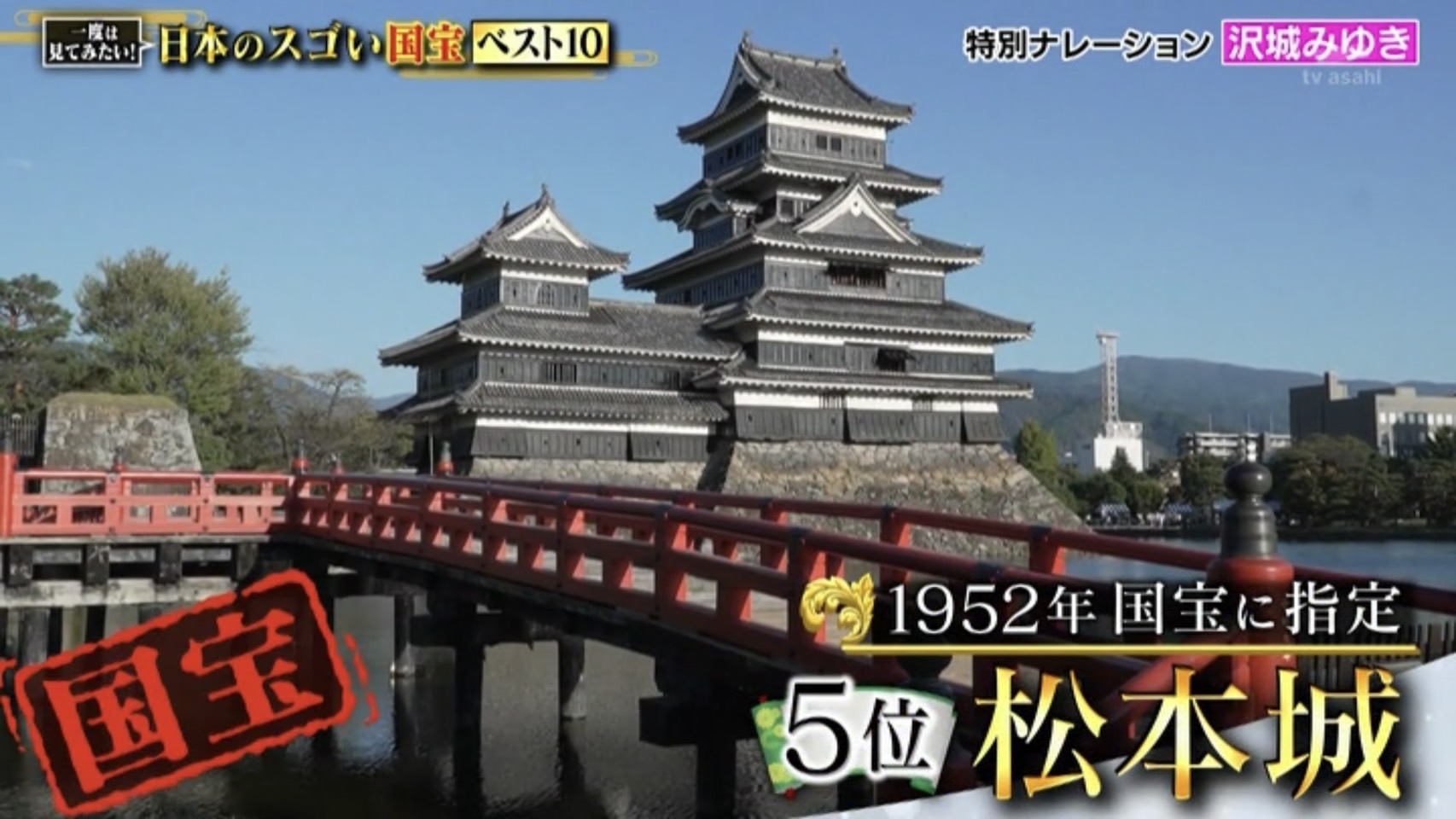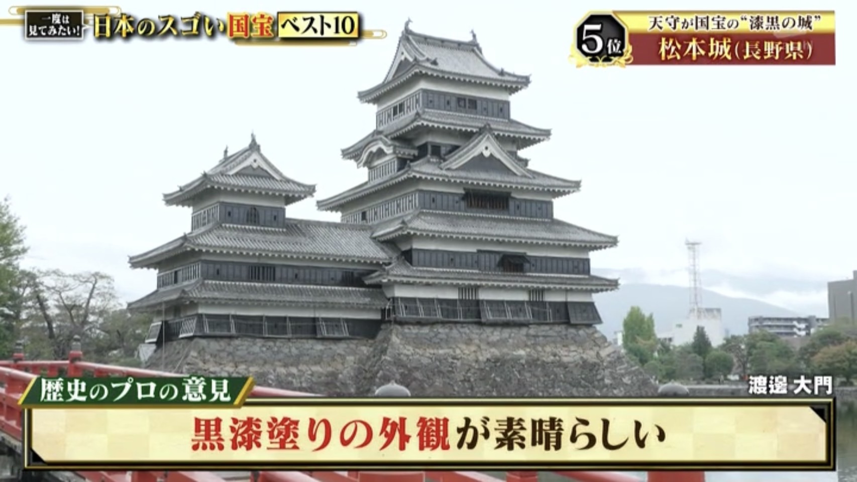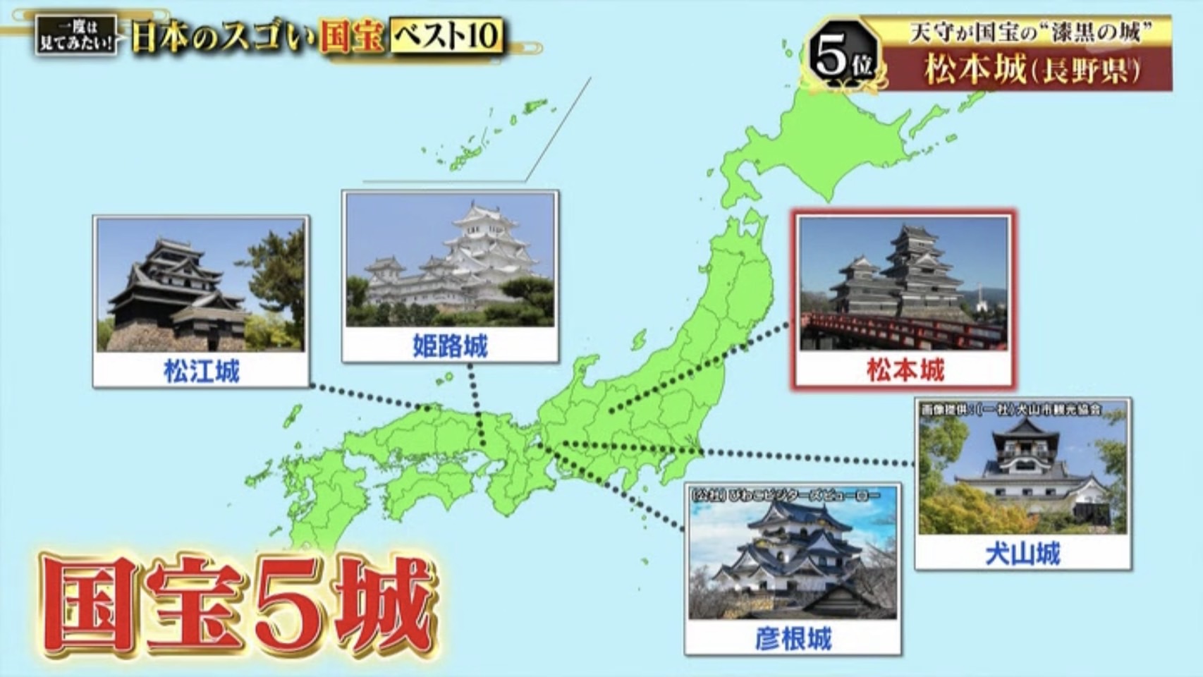5位は”漆黒の城”として知られる長野県の松本城。