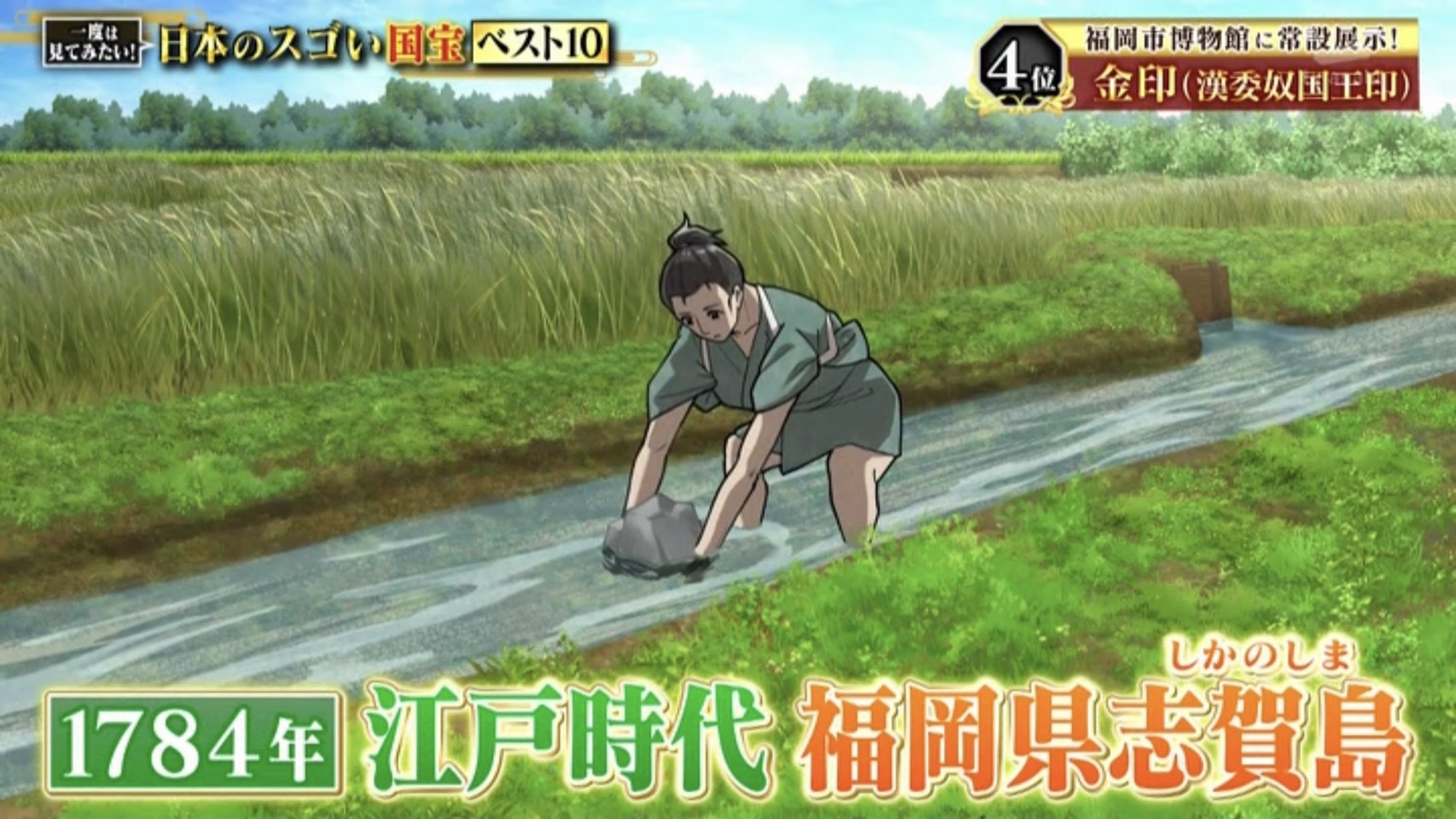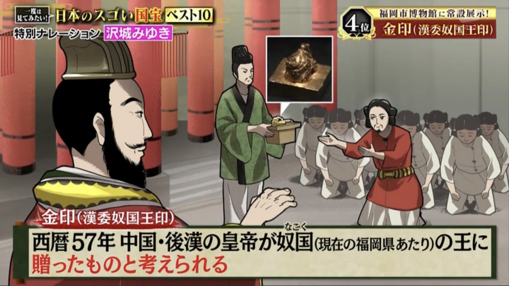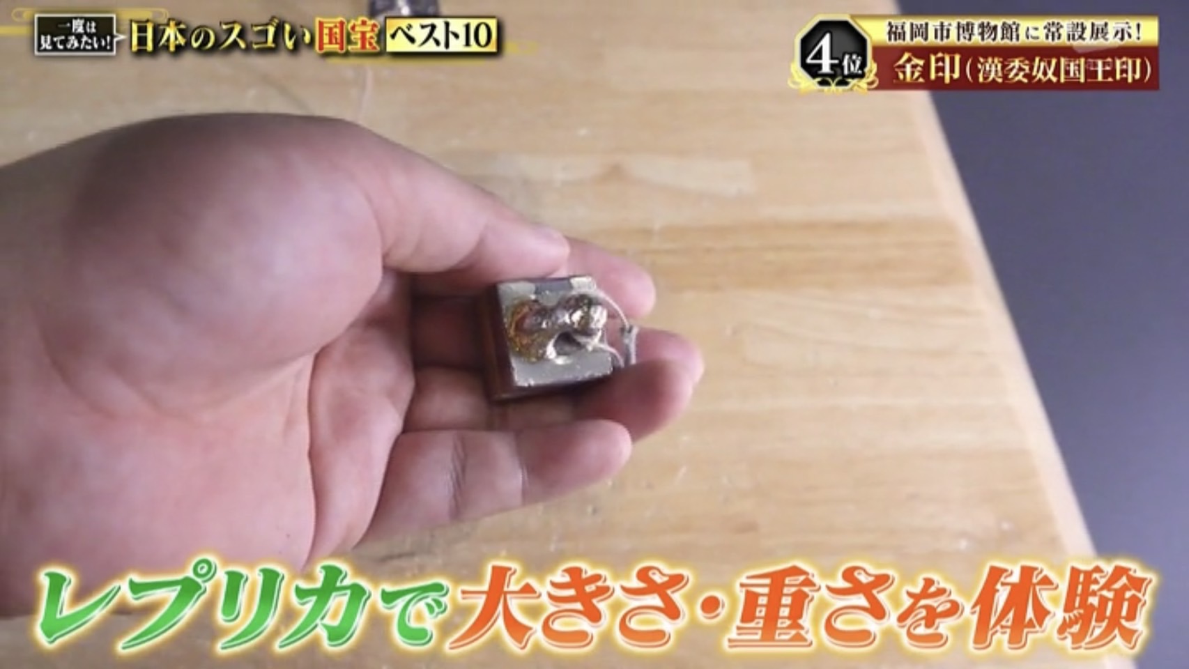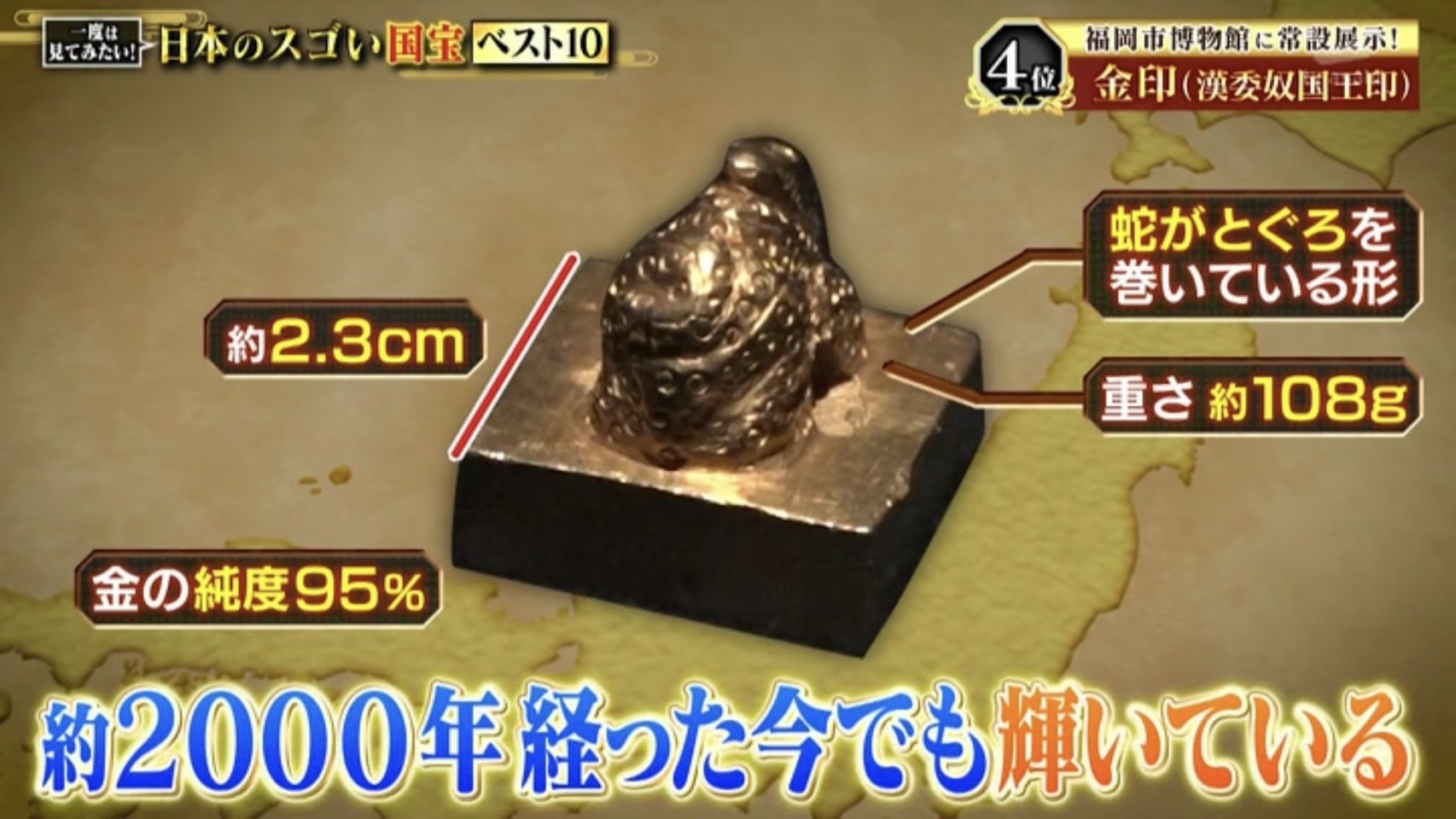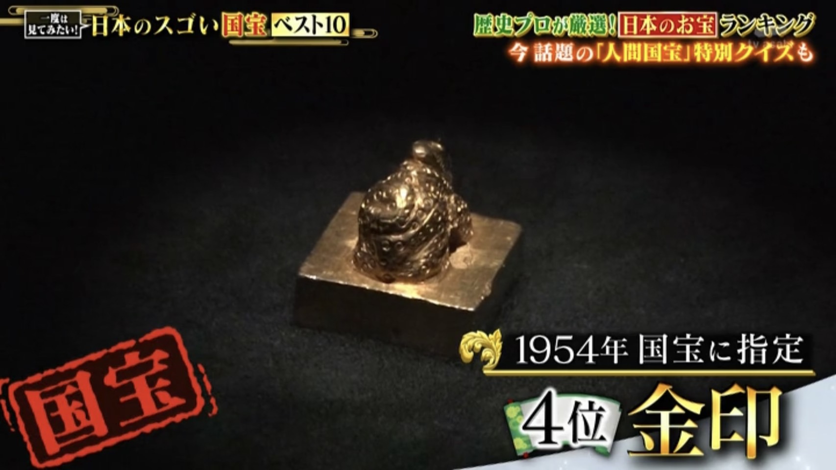 第4位は1954年に国宝指定された『金印(漢委奴国王)』です。