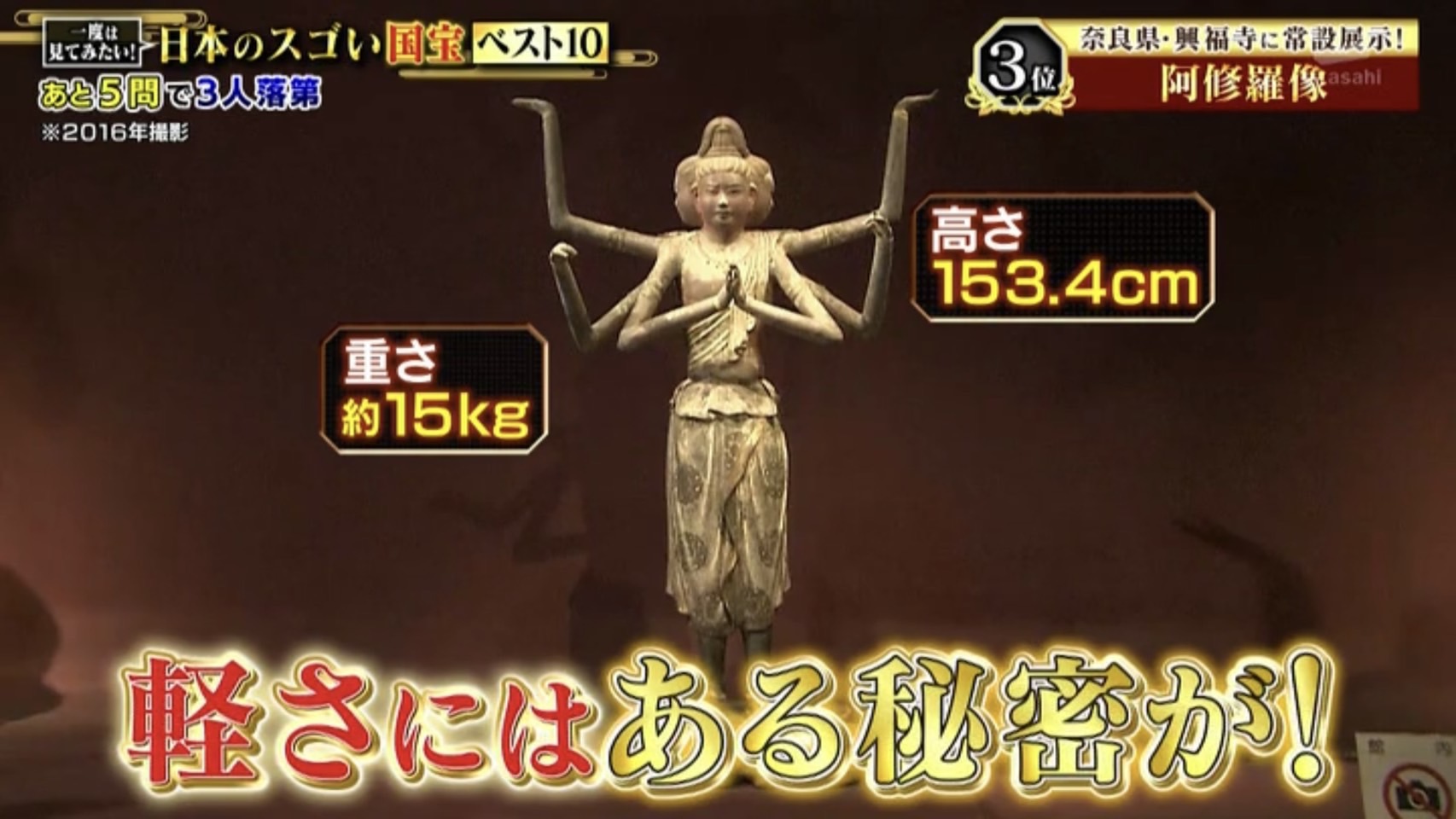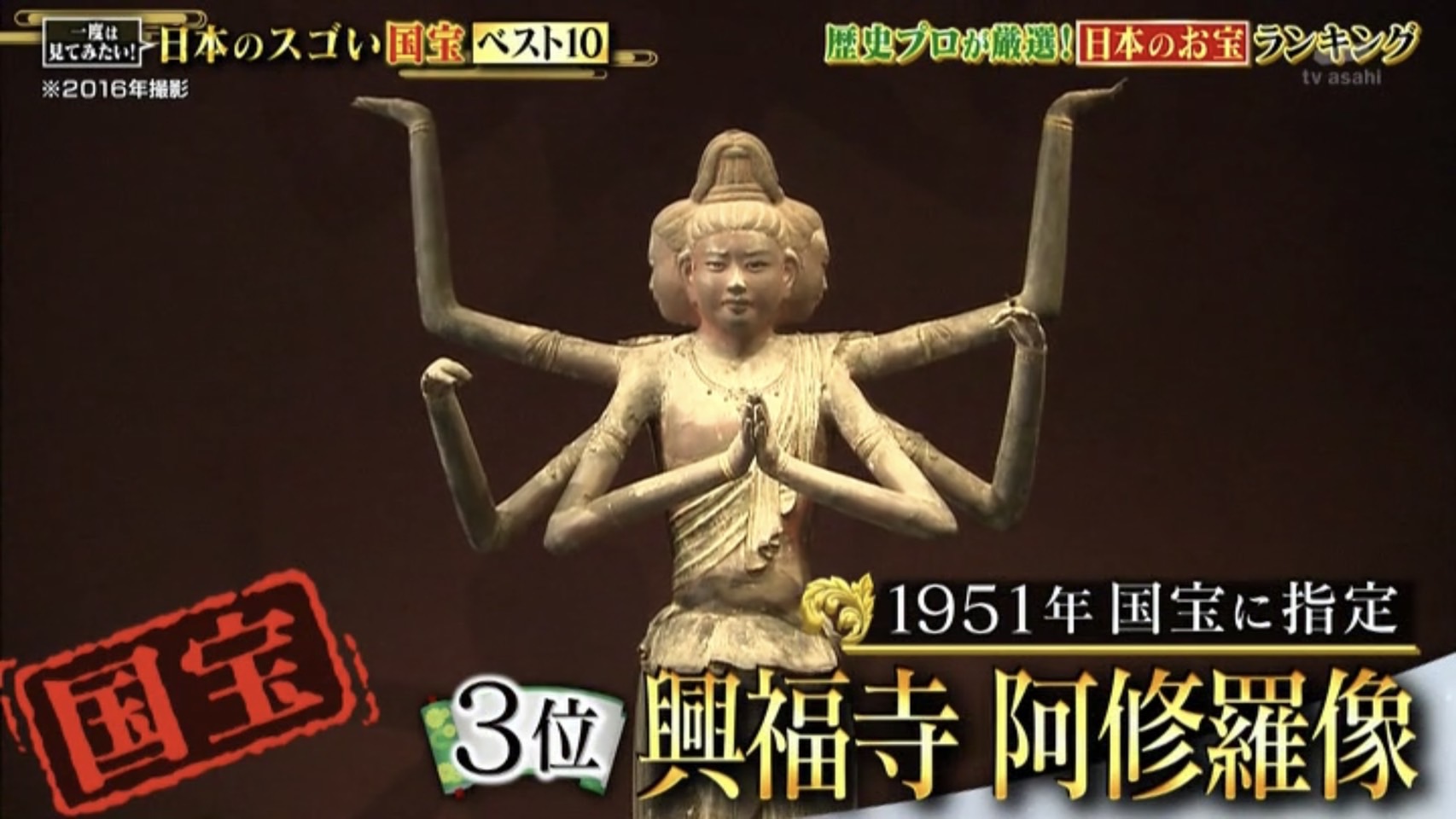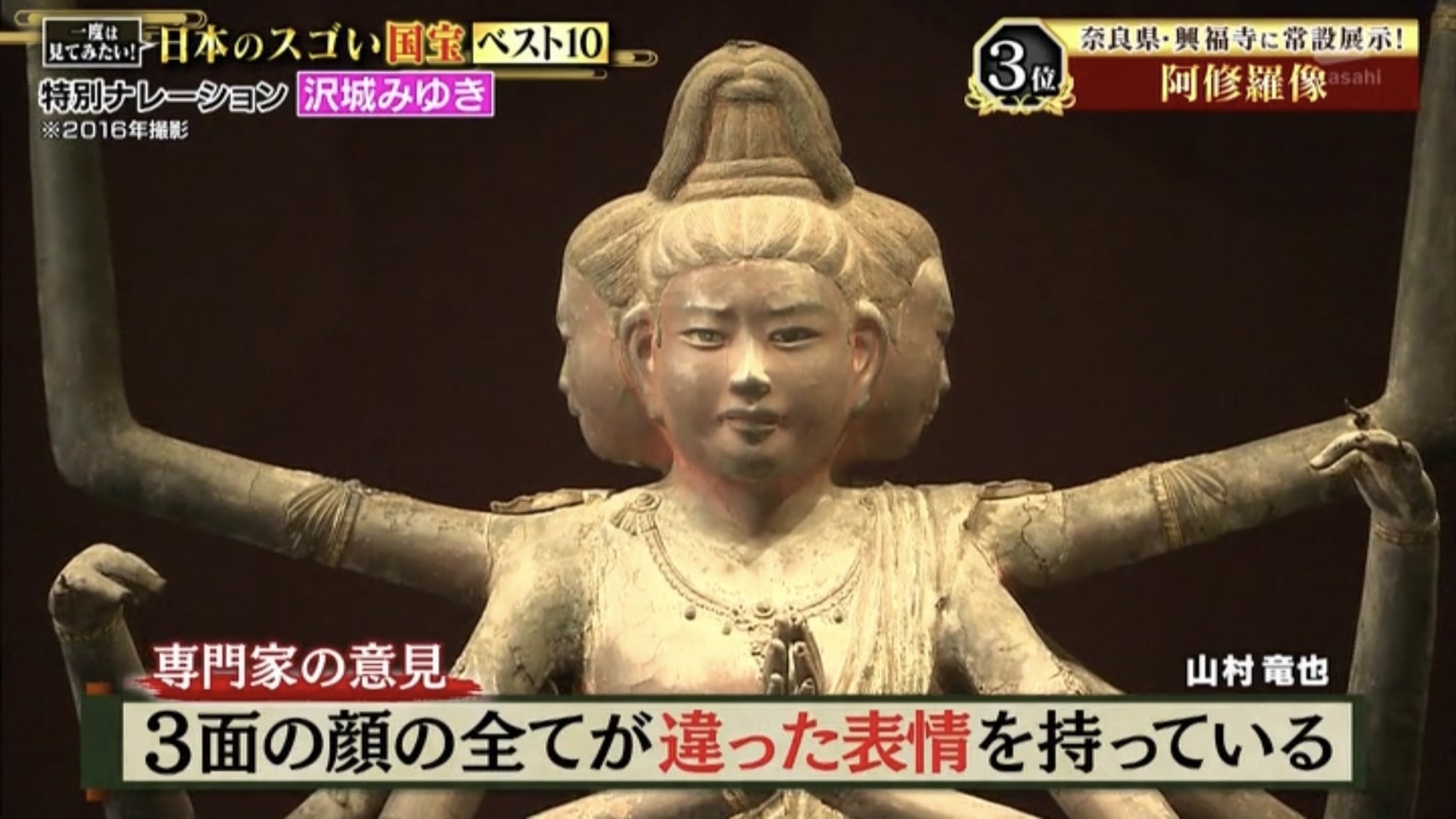 3位の国宝は興福寺所蔵の『阿修羅像』です。