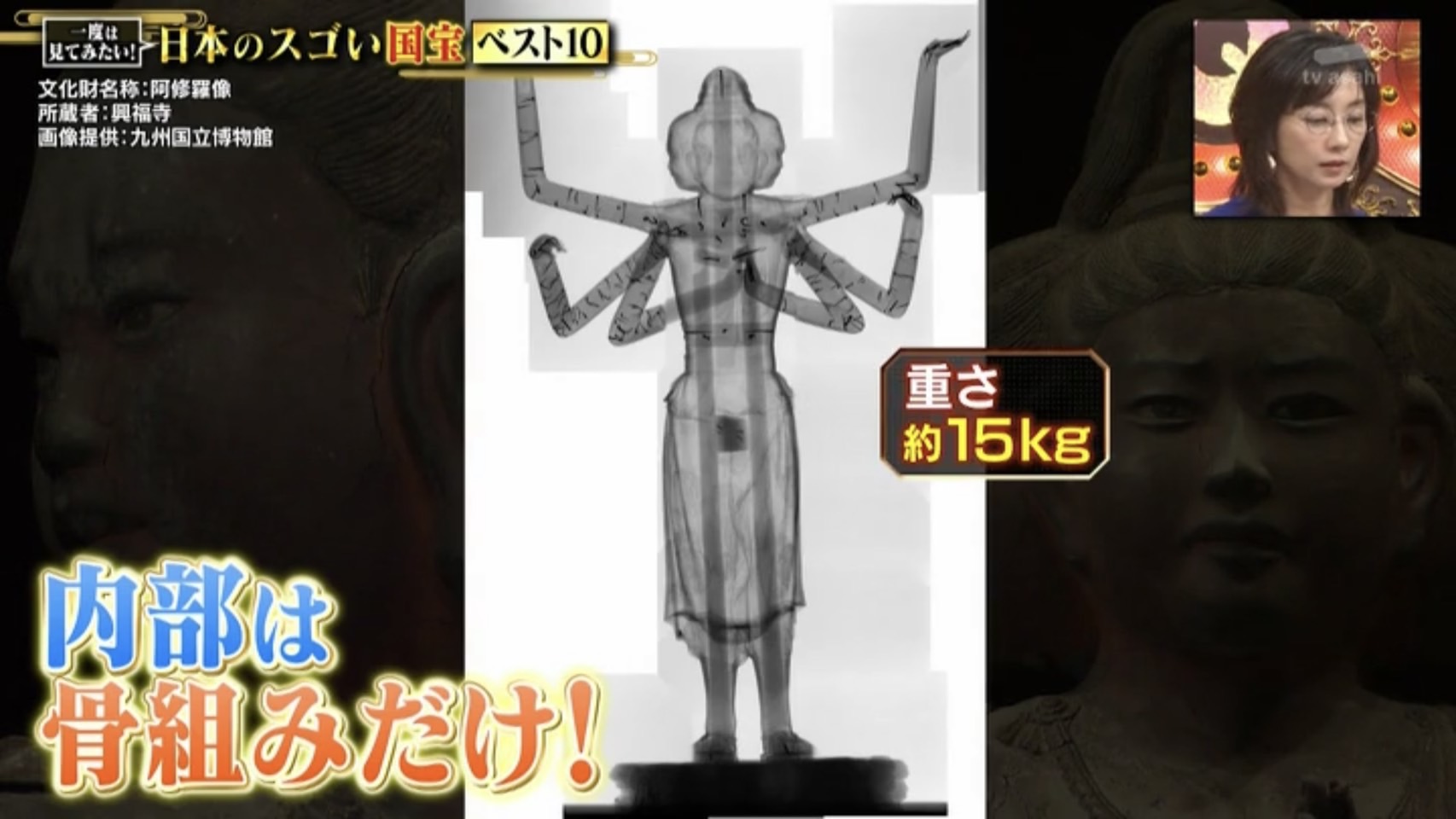 CTスキャンの画像で見ると、『阿修羅像』の内部は骨組みだけになっているのが分かります。