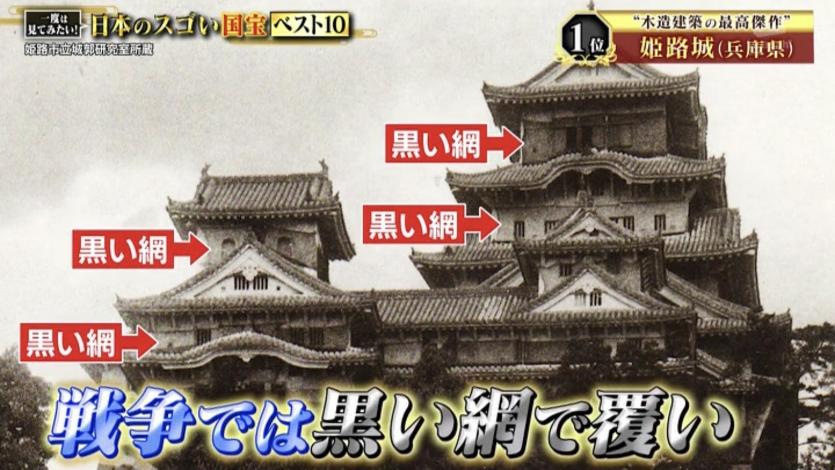 太平洋戦争時は空襲の標的にならないよう、黒い網で覆われていました。